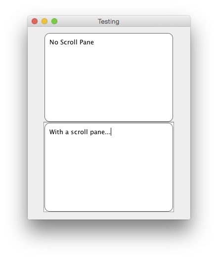 根据您的代码示例,您没有覆盖getInsets,这将是非常重要的,另一件事是,您的JTextArea似乎在JScrollPane中.