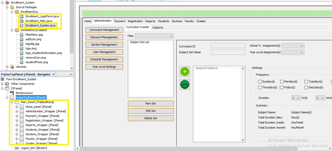 这实际上是一个错误,将所有面板和其他组件放在Enrollment_System.java类中,我怀疑这超出了项目VM选项的Xms限制。