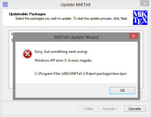 我已经在我的笔记本上安装了MiKTeX 2.9,但是我既不能更新它,也不能下载新的软件包。每次我尝试更新MiKTeX时,它都会显示