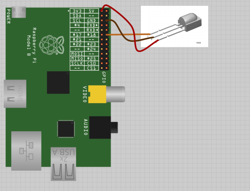 我把一个红外线接收器连接到Rasberry Pi上,像这样: