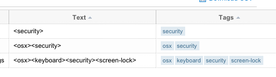 <osx><keyboard><security><screen-lock>如何创建标记的唯一列表,以便在Tags表中查找它们,而不是这个硬编码版本: