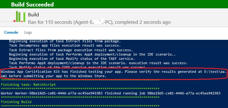 CI是在之上构建的。有一个自定义的构建代理,其最新的软件安装在我的VSO构建配置上。问题是WACK需要管理特权才能运行,但是VSO要求运行BuildAgent的用户不应该拥有管理权限。