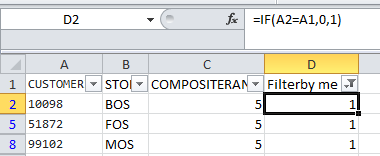 =IF(A2=A1,0,1) 3的公式)