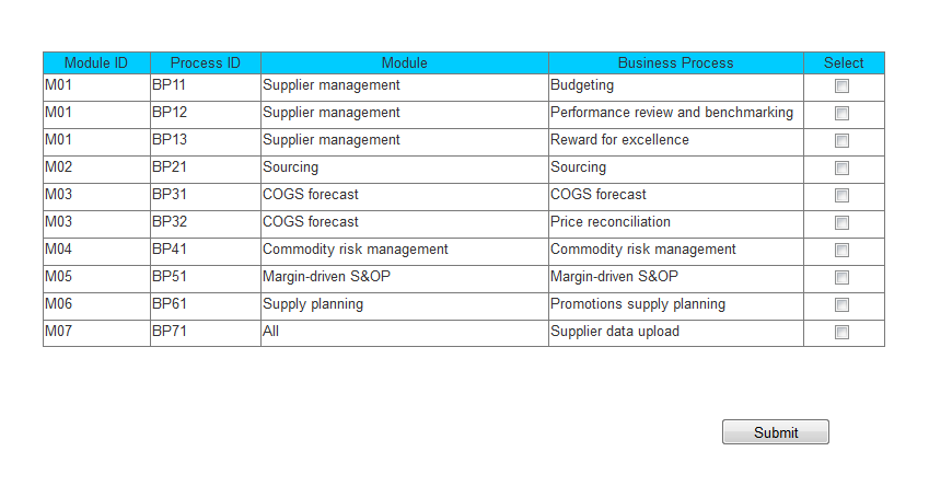 在其中,我要选择项目,并将该项目列表转到其他页面,在该页面中,我需要填充列表框小部件中从网格中选择的业务流程名称。