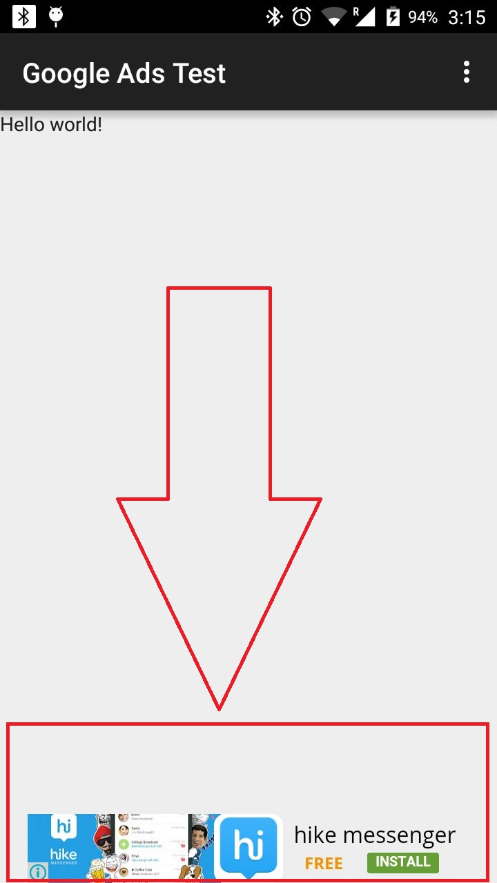 我看到的是实际的广告,而不是我的应用程序中的测试广告。检查一下图像和代码。