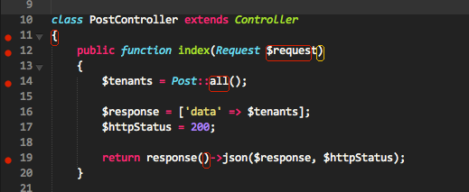 我正在使用Sublimetext 3和SublimeLinter (以及亚石灰石林特)来链接我的文件。我以前从未使用过这个插件(我在PHP中也没有广泛使用IDE),我看到SublimeLinter在我的代码中显示了这样的错误:(一些laravel代码)