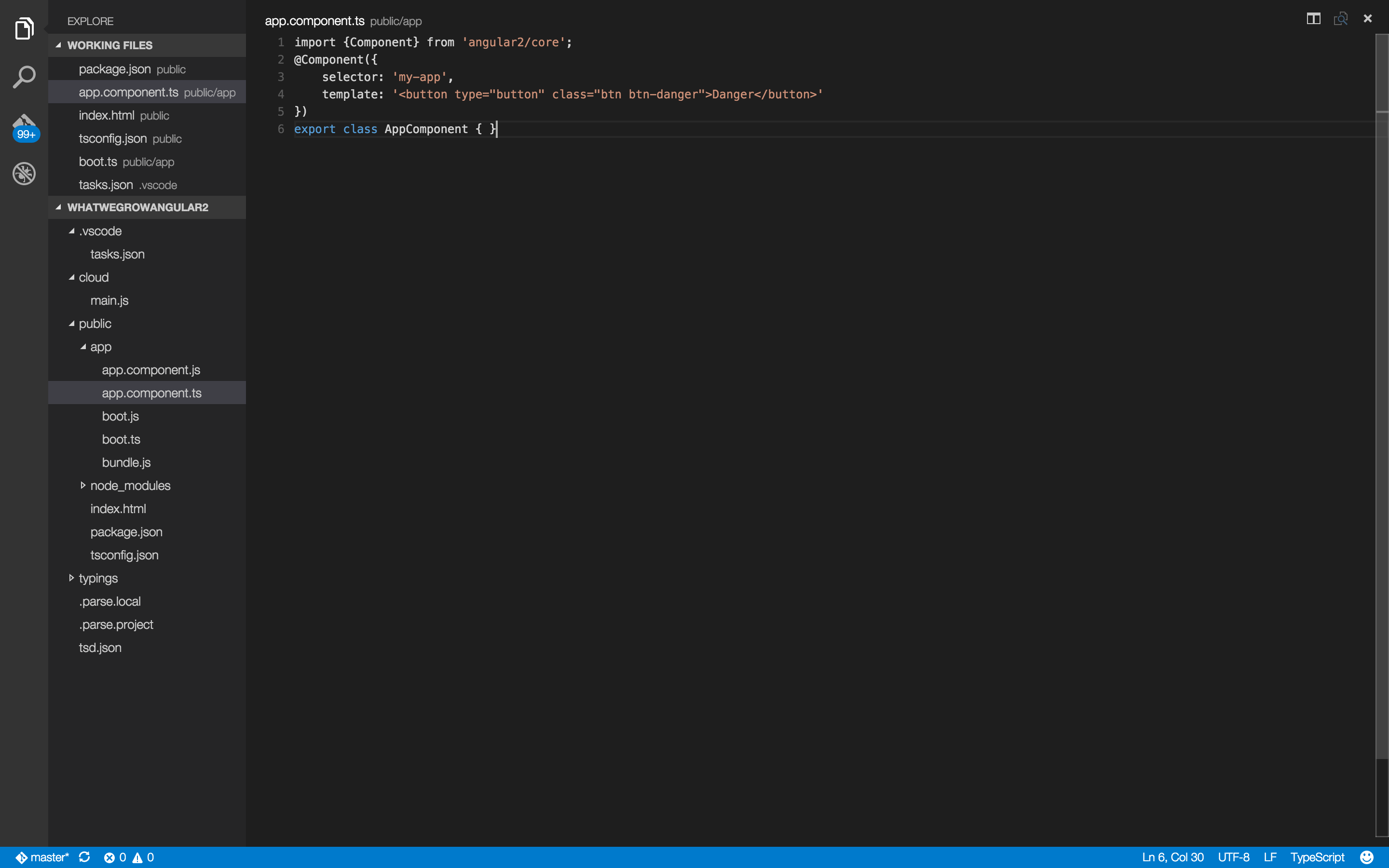 在这个阶段,我有这两个脚本标记,它有点工作(页面上的所有内容都是一个有引导危险按钮的角2组件-它工作得很好,只是加载速度有点慢):
