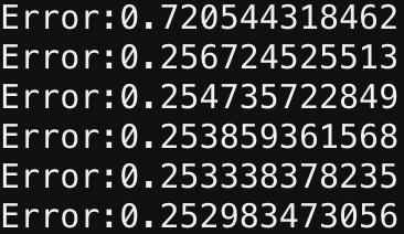 print "Error:" + str(np.mean(np.abs(layer2_error))) #average error