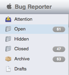 当我登录到苹果Bug记者 (又名雷达)时,侧栏显示了以下部分: