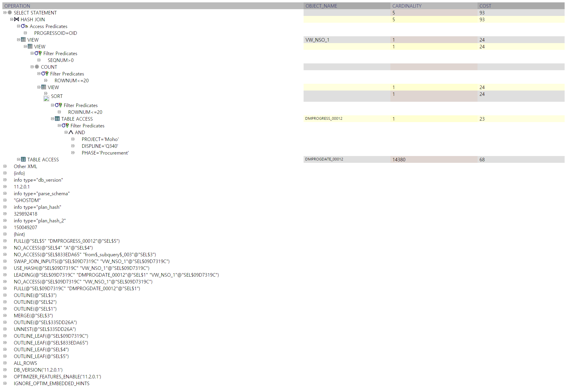 );这是11g中的查询计划。