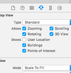 要启用shouserLocation stting,请转到情节提要,并选择您的地图视图,并在属性检查器中选择shwo用户位置选项。