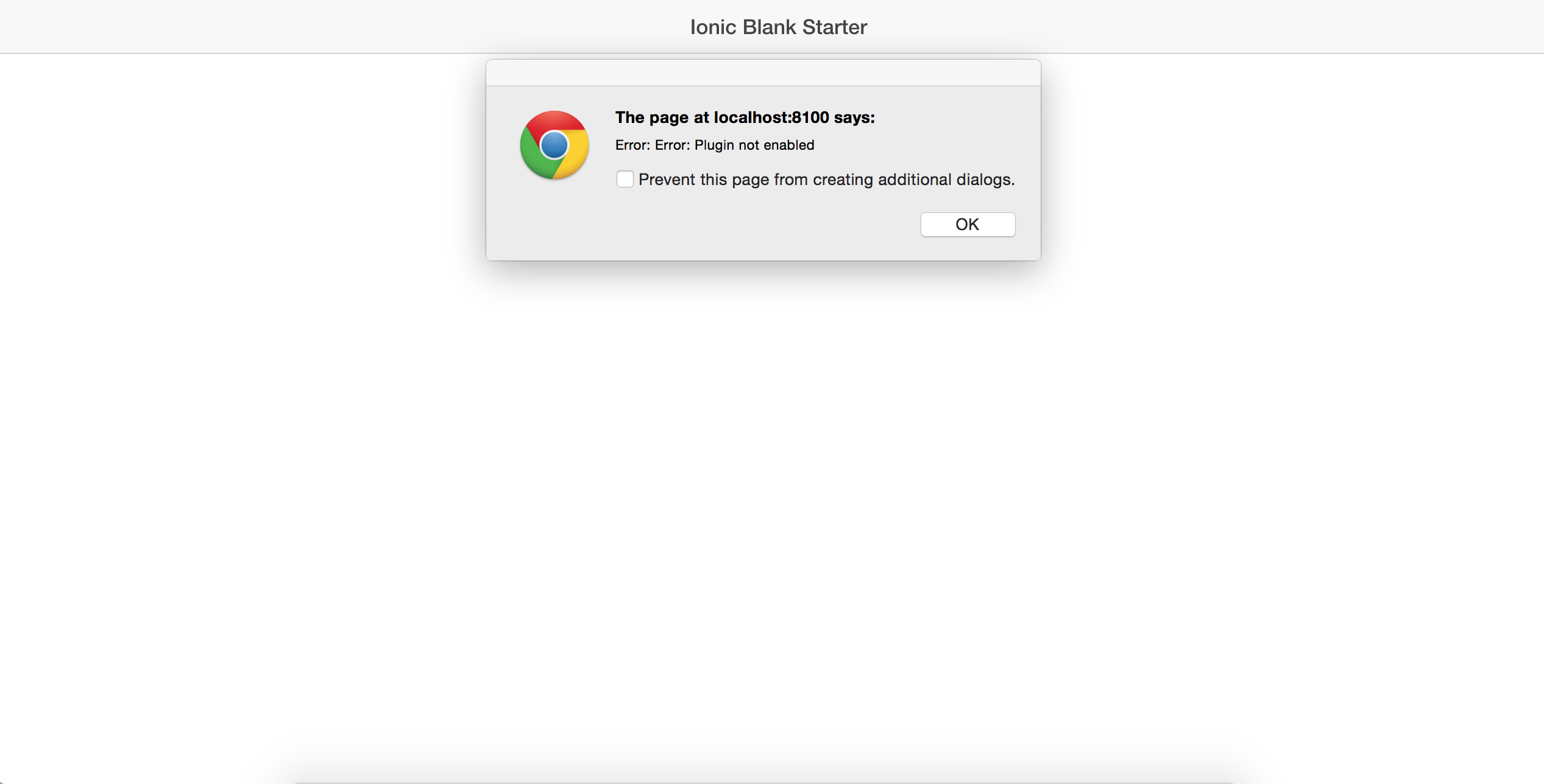 })看到此警报的另一个可能性是,您正在尝试用ionic serve、cordova serve或cordova run browser在浏览器中测试您的应用程序,但是直到我今天发布的插件版本0.7.7才能使用浏览器平台。