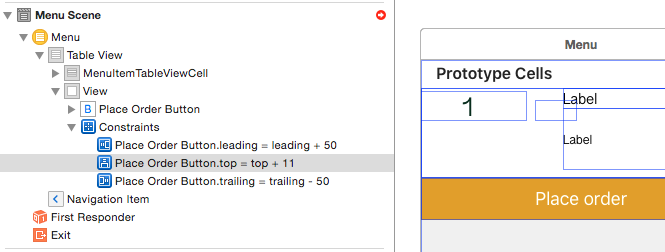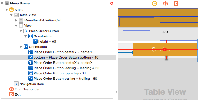 我在一个UIButton中有一个UIView,它位于UITableView的底部(外部和tableViewCell之后),具有以下约束: