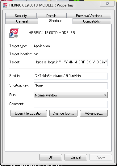 Arguments =@"/c ""C:\TeklaStructures\19.0\nt\bin\TeklaStructures.exe"" -I ""Y:\ICON\HERRICK LIC.19.O ICON\MODELER\usimp_bypass_login.ini"" -i ""Y:\INI\HERRICK_V19.0.ini""",