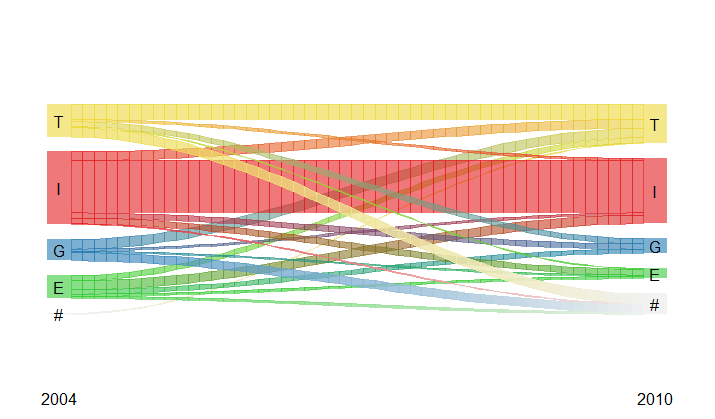 我正试图用R为打印报告制作一个Sankey图。我目前已经使用了两种方法来完成这个任务,但是也没有达到我想要的效果。
