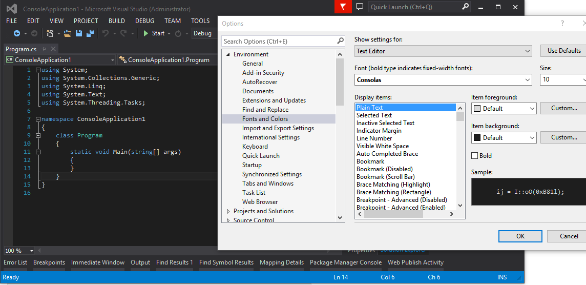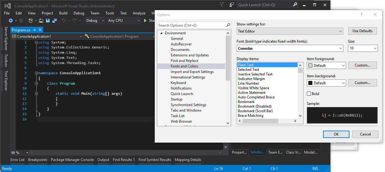 我正在使用VS 2015社区版,并注意到文本编辑器中的默认字体与使用相同字体的VS 2013社区版本相比是模糊的。我把这些都放在我的机器上,可以看到VS 2013使字体更加流畅。