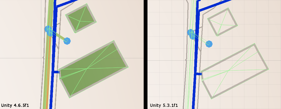 正如您在图片中所看到的,4.6.1f中使用的相同代码呈现网格,而在5.3.1中则不是。虽然您可以看到网格设置在场景视图中。