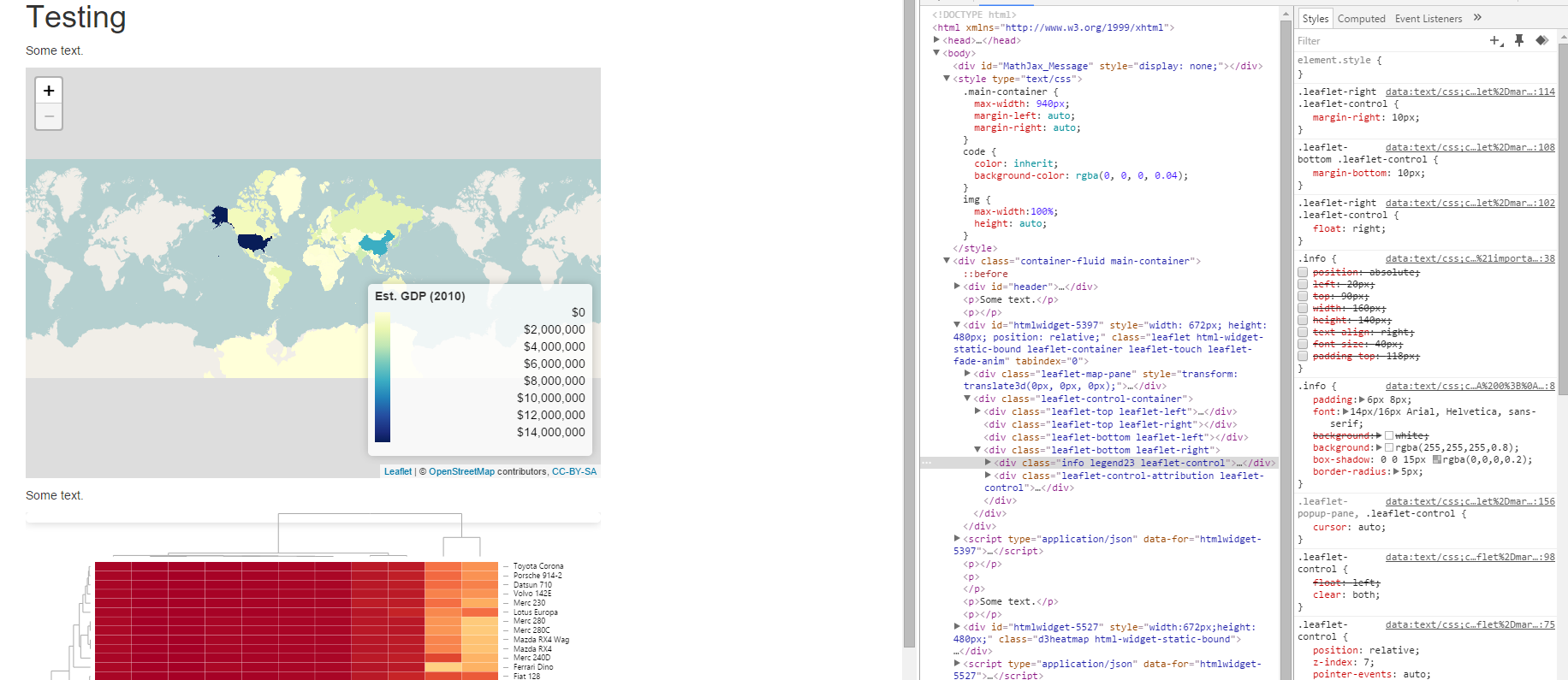 当我取消选中CSS选项时,传单和d3heatmap共享一个名为.info的css类,然后您可以再次看到图例。