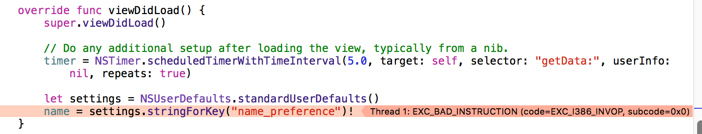 let crash = settings.stringForKey("name_preference")!使用string**:**的
