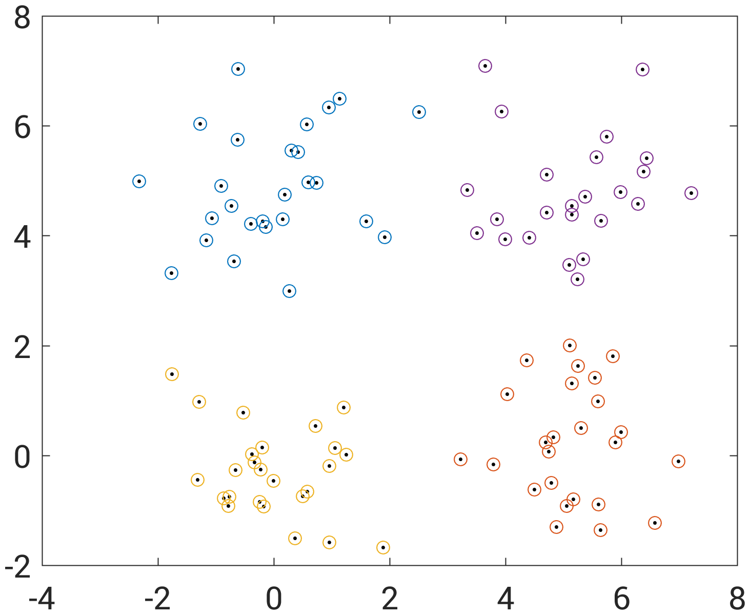 K=4集群的K-均值聚类: