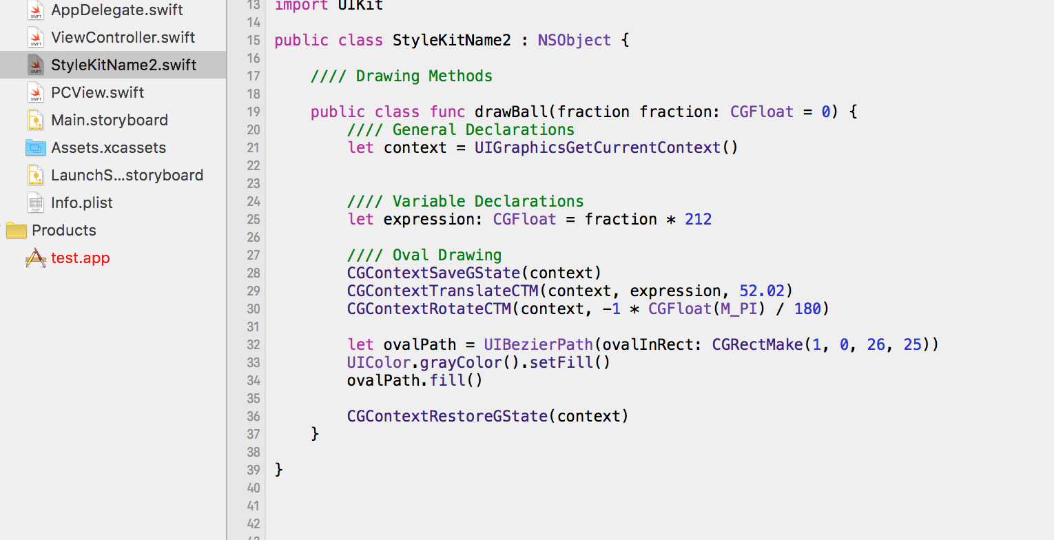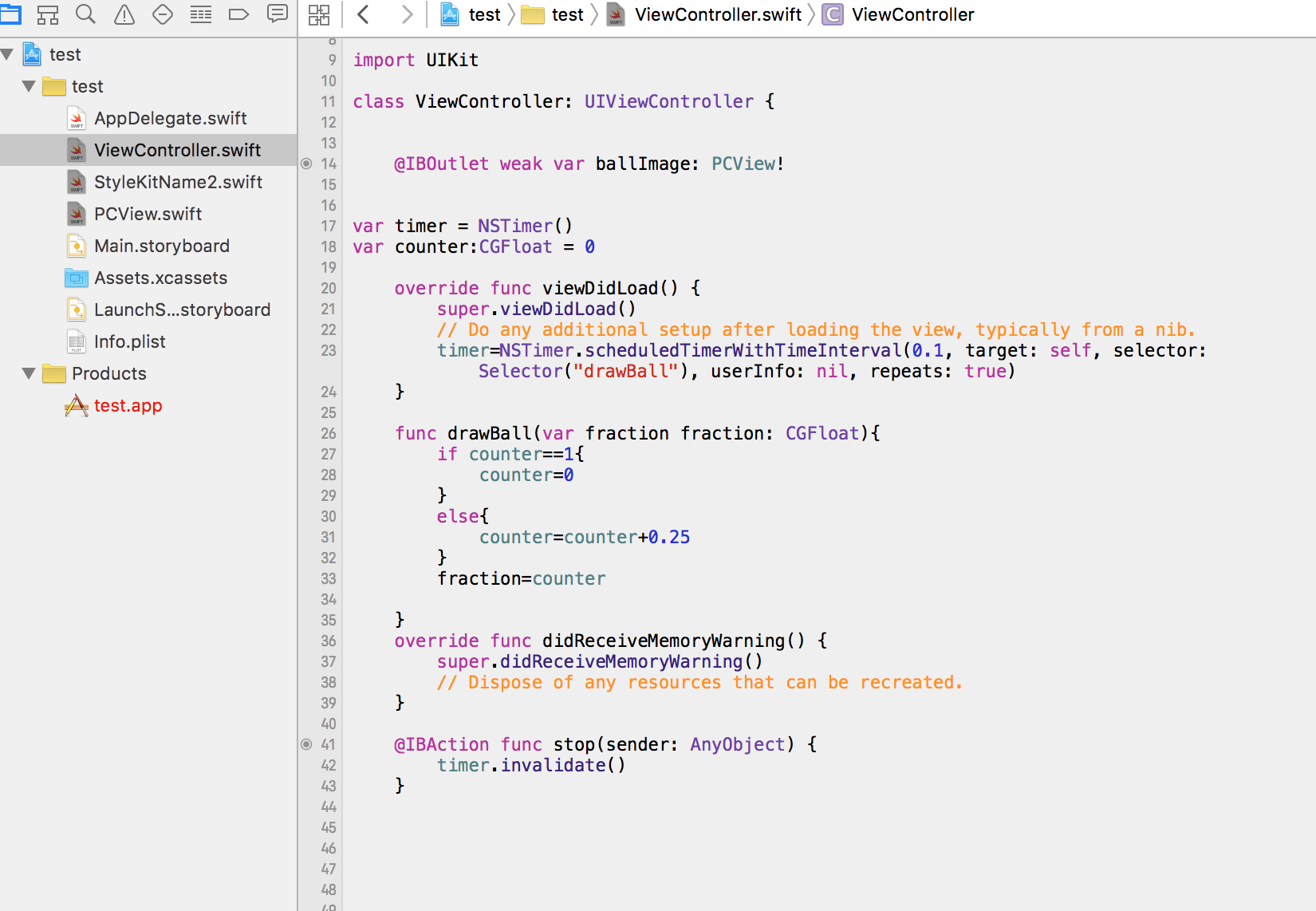 我试图了解PaintCode动画是如何在Xcode中进行交互的。在我的例子中,我有一个从右到左的球。我想要动画启动,只要应用程序开始和停止,当你停止按钮。附件中是我迄今所做的工作: