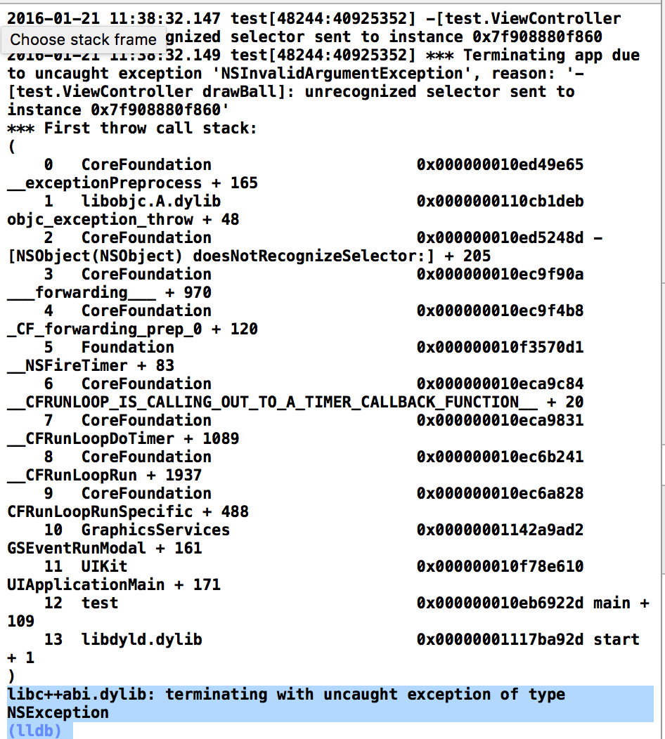 drawBall函数是用参数定义的,但是您从不通过NSTimer传递任何东西。如果要将参数传递给timer fire函数,则应该使用userInfo初始化的NSTimer参数。NSTimer试图调用选择器"drawBall",但是您的函数是用参数定义的。因此,应该是"drawBall:"。尝试将其更改为: