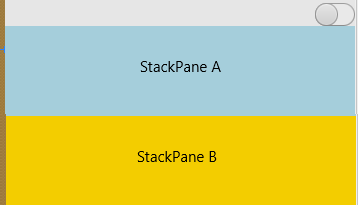 我的阶段包含一个ToggleSwitch和两个StackPanes,我们称之为A和B。两个StackPanes都位于父StackPane中的同一个空间中。这意味着,如果A和B都是可见的,并被设置为托管,则它们各自占用所分配空间的一半,如下所示: