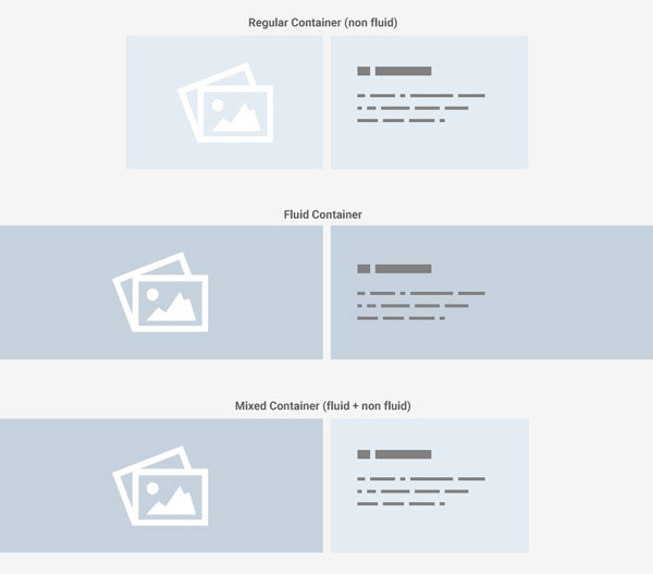 我做了一个图片,显示了常规的引导容器(常规/固定和流体)和底部的一个我正在寻找(混合容器)。