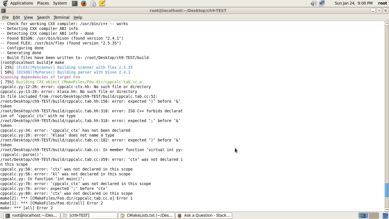 bison -vd cppcalc.yy这个很好用。我想把这个想法转换成cmake。现在我在下面写了一些类似的东西,但是我在输入make之后会出错,我不知道哪里出了问题: