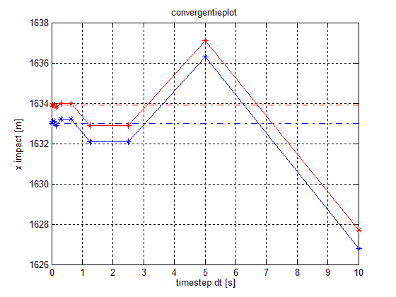 我用ode45和ode23建立了一组非刚性微分方程.然而,这两种方法都收敛到了一个稍微不同的解决方案。我怎么才能知道哪一个是正确的?见附图,蓝色为ode45,红色为ode23。虚线是每个求解器的最终值。而且,ode15s有点不同(小于1米).