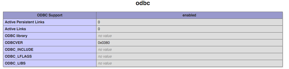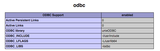 我在我的mac上用unixODBC编译了PHP扩展。但是在phpinfo上,它显示如下: