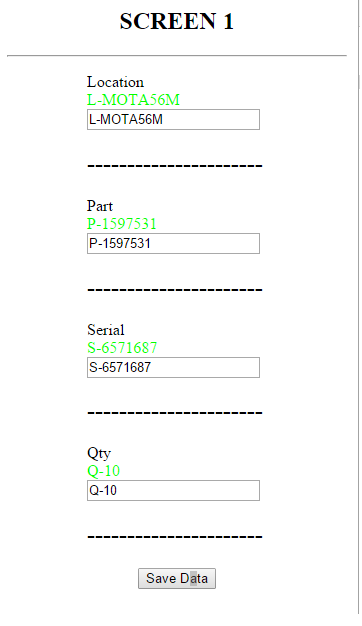 我希望它只显示位置(屏幕ID 0)部分,一旦输入,我希望它然后显示零件,串行和QTY(屏幕ID 1)。