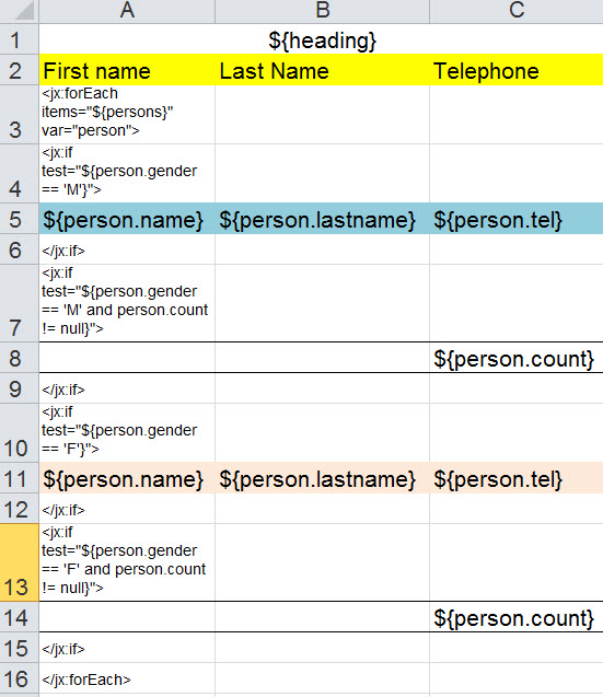 使用JXLS 1,可以通过简单的调用在Excel模板中进行替换