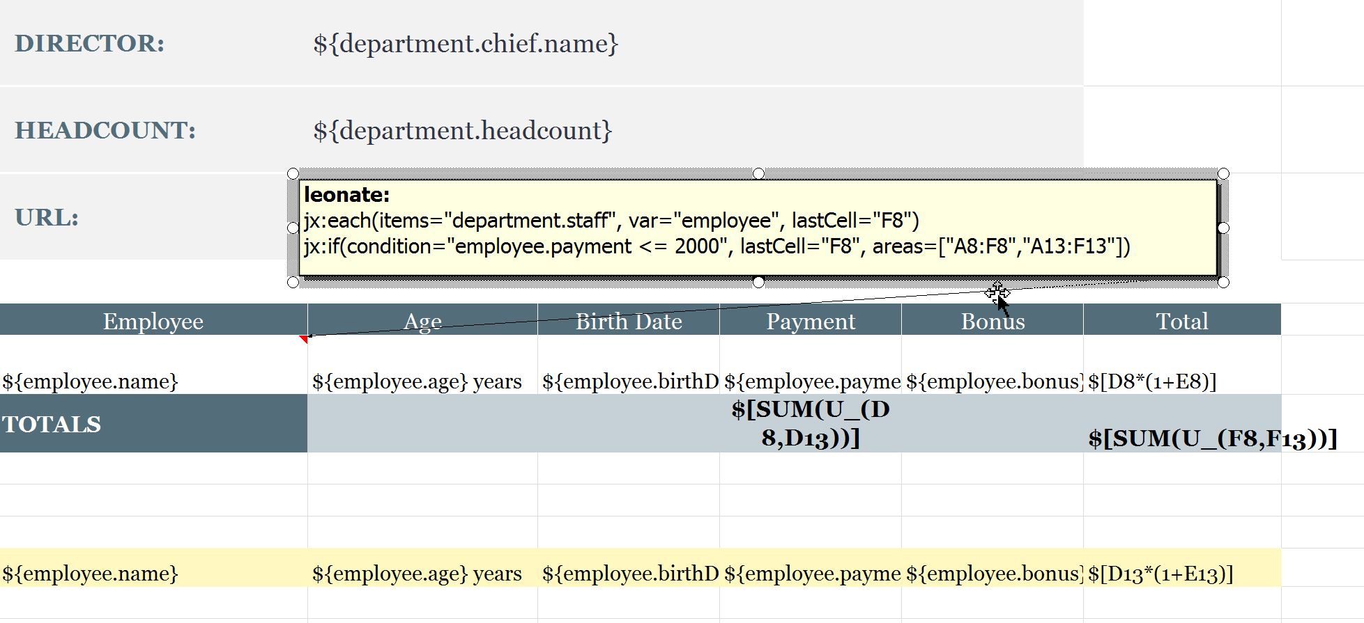 现在,我需要迁移到JXLS 2,以便在非常大的XLSX文件中使用SXSSFWorkbook,但是我无法成功地将好的旧标记转换成它们的注释等价物:在网上文档中,我看到可以将更多的表达式组合在一起,但例如,jx:每个后面跟着一个jx:如果使用循环变量的会生成一个表达式EvaluationException。