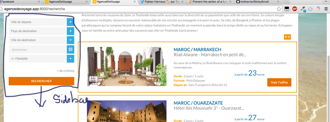 我使用的是jQuery插件stickyScroll,所以当我在一个特定的页面上时,边栏和滚动的用户一起出现。