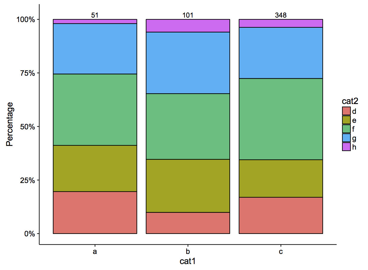 ggplot(df2,aes(x=cat1, y=percent, fill=cat2)) +