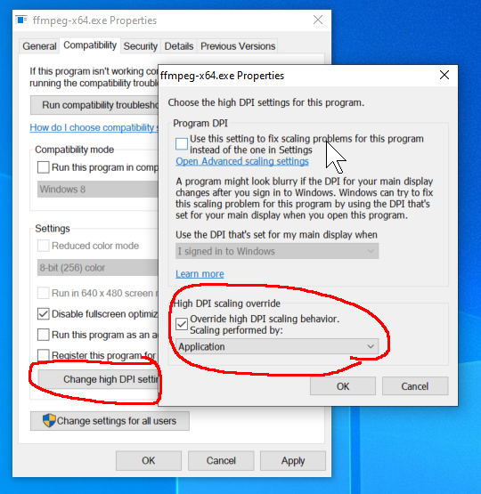 ffmpeg-x64.exe->右击可执行文件并在上下文菜单中选择Properties,