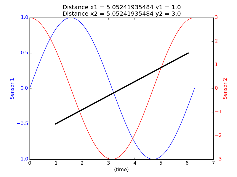 我想使用光标(x,y值显示在图的左下角)来测量两个点之间的y和x距离,但是这只适用于在第二个轴上绘制的数据。