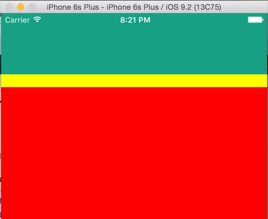 其他条件:我不会将状态栏设置为隐藏。但是,如果我将状态栏设置为隐藏([UIApplication sharedApplication].statusBarHidden = YES),红色子视图的布局将变得正确(我的意思是,将其4条边与superview的边沿对齐,这样就看不到黄色的背景颜色)。就像下面。