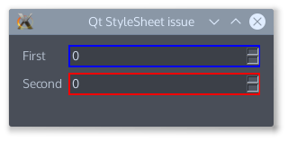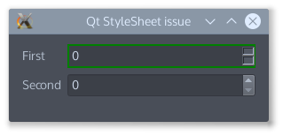 对于已经存在的Qt项目,我希望通过qss为重点部件设置边界。但我面对的是一些意想不到的结果。当我更改QSpinBox (和QDoubleSpinBox)的边框时,会像我预期的那样改变边框,但是向上键和向下键也会改变,看起来很难看。