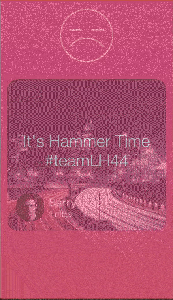 我已经建立了一个屏幕非常类似于Tinder主屏幕。我已经设置了可拖动图标的边框和下一张卡从屏幕顶部被动画加载。目前有两个按钮(一个接受按钮,一个拒绝按钮),当他们被按下卡旋转和转换出屏幕的正确方向。这个功能目前完成了这个动画..。