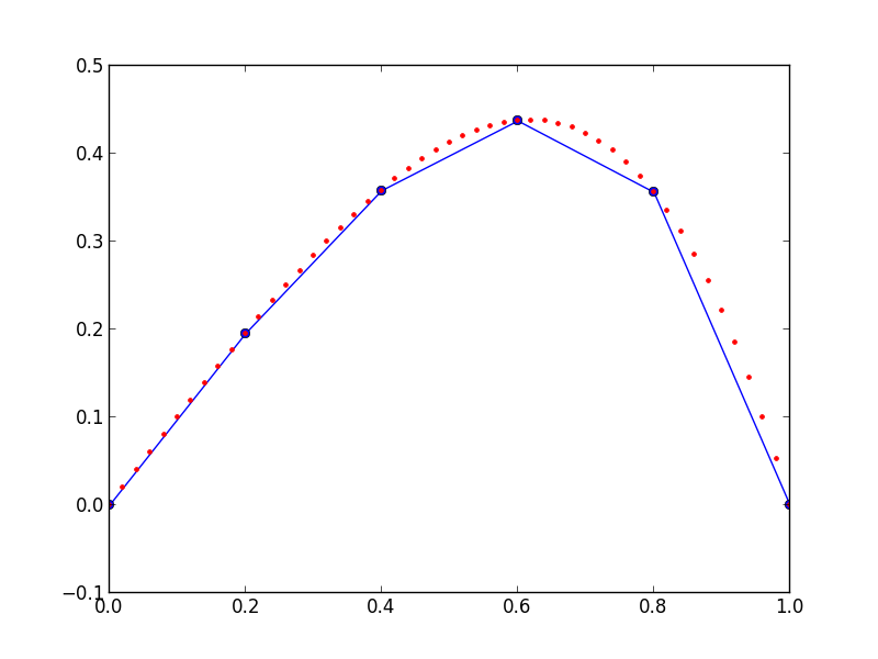在CG方法中,基函数是分段连续的,意味着状态变量本身是连续的,但导数可能不是连续的(即基函数之间的状态变量的导数可能存在不连续性)。这意味着,任何你正在解决的问题的解决方案可以在解决方案中包含非物质的扭结。注意以下解决方案中的“扭结”