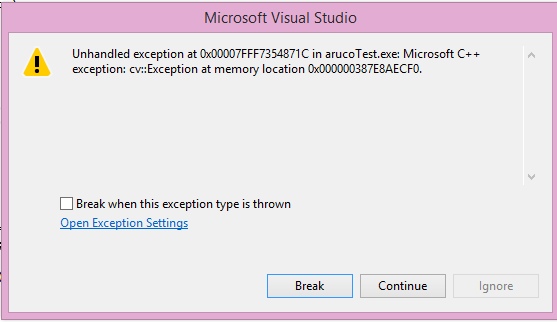 我使用Windows8.1、2013、OpenCV3.0和ArUco 1.3.0