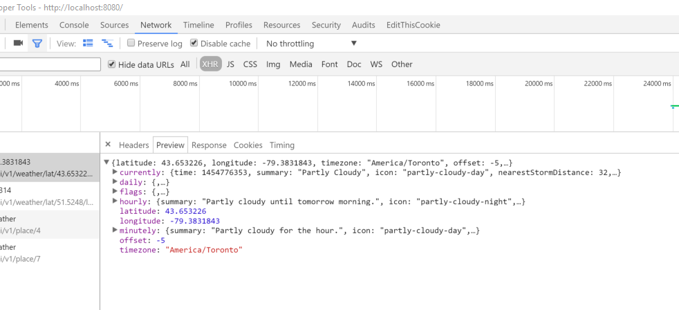 您可以在chromes网络选项卡中查看“响应”和“预览”。如果请求返回JSON数据,那么预览选项卡将自动为您格式化它。