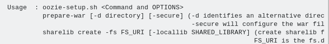 Usage : oozie-setup.sh <Command and OPTIONS>