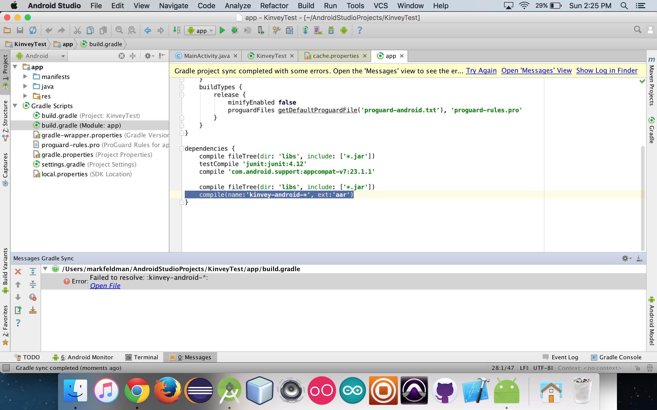 " kinvey -android-*“应该解析到libs文件夹中可用的最新Kinvey,这样每次升级到最新的Kinvey时都不需要更改build.gradle文件。但是,我不知道为什么现在对Android的aar文件不起作用。
