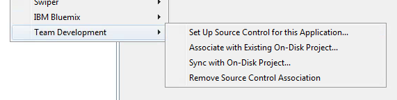 使用NSF设置源代码管理,右键单击NSF,团队开发,设置源代码管理: