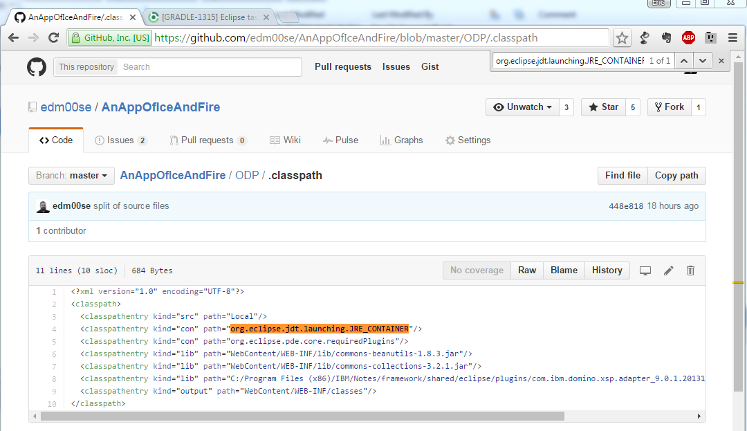.classpath,它可以在您的open文件夹的根目录中找到,其中有一个可靠的文本编辑器(Notepad++等)。您应该能够通过Project > build path屏幕消除构建路径的冲突,但这是一次简单的搜索整个过程的方法。