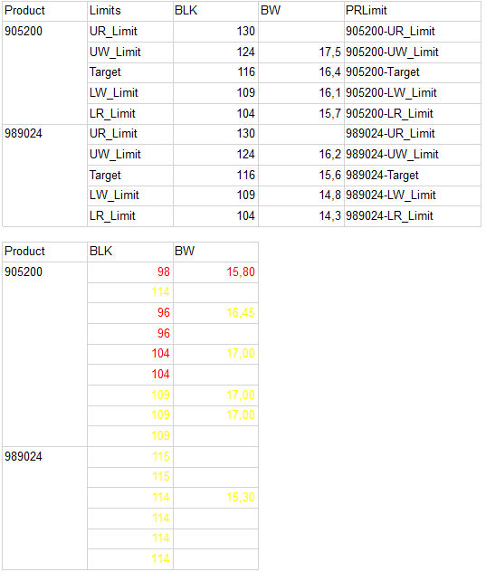 IIF(Fields!BLK.Value < Lookup("LW_Limit",Fields!Limits.Value,Fields!BLK.Value,"Target"),"Yellow","Green"))))
