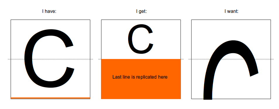 要使字母只填充窗口的一半,您需要将更大的坐标范围映射到窗口大小。按照你的草图,范围应该是-3.0,1.0。这样,范围的中间是-1.0,这意味着字母的底部(y坐标为-1.0)映射到窗口的中间。